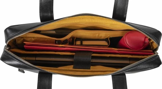 Binnenin is de tas uitgerust met een versterkt en gesloten vak geschikt voor laptops tot 15,6, een compartiment voor het meenemen van mappen, veel vakjes voor het opbergen van pennen en kaarten, maar ook 2 vakjes waaronder een vak voor smartphones en tot slot een groot ritsvak voor waardevolle spullen of losse items.