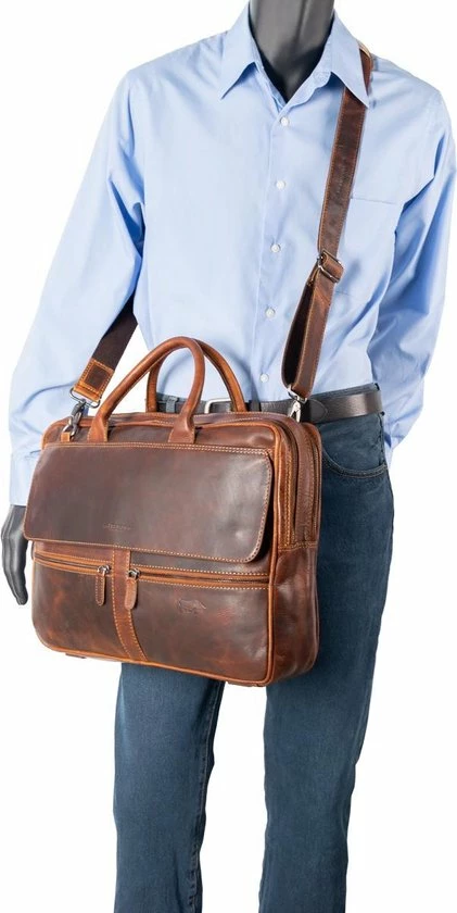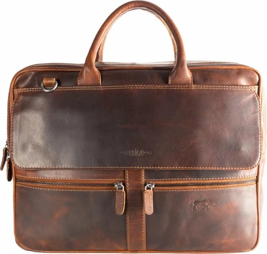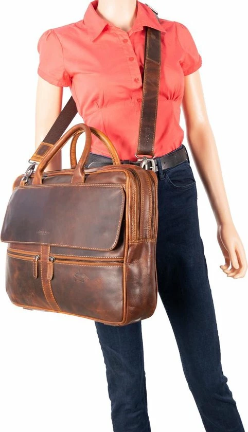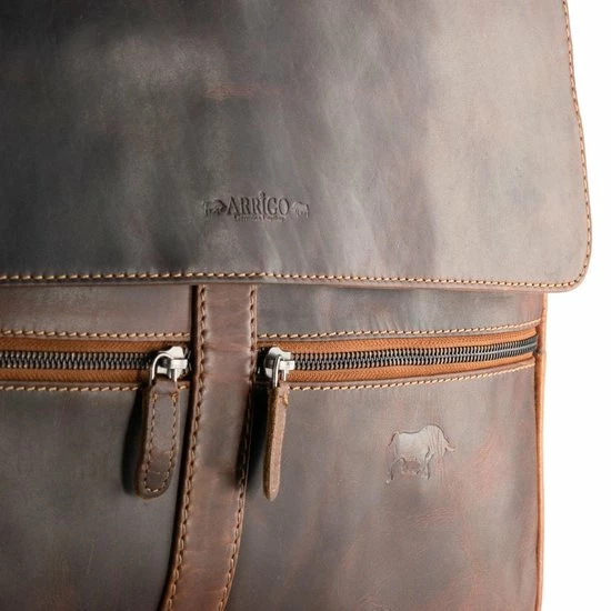 โข Gemaakt van bruin gewaxt leer wat door gebruik steeds mooier wordt.