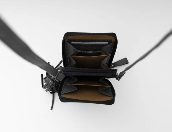 Aan de bovenzijde 3 vakken afsluitbaar doormiddel van ritsen.