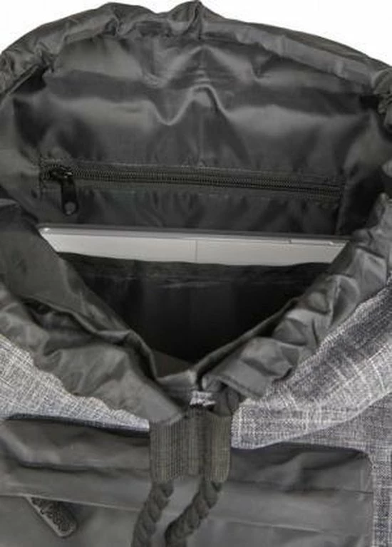 β’ Ruim hoofdcompartiment met zwart trekkoord en twee zwarte bevestigingsbanden met drukknopen