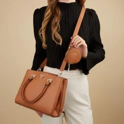 Uitgang ๐ฅ Guess Medium Schoudertas / Crossbody Tas Dames – Centre Stage – – Bruin โ๏ธ