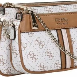 Nieuw โจ Guess Kleine Schoudertas / Crossbody Tas Dames – Kasinta – All-over Logoprint – Wit ๐