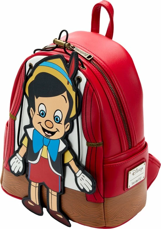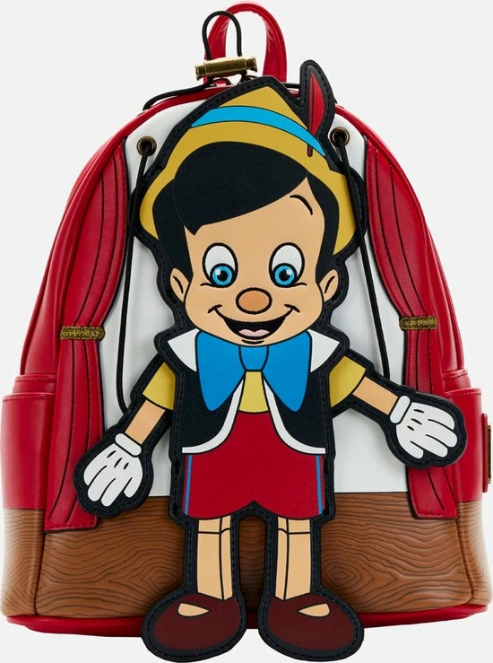 Rugtas Pinocchio Marionette. Geweldige kunstlederen tas uit de Disney-collectie van het Amerikaanse designermerk Loungefly. De tas heeft het uiterlijk van ’s werelds beroemdste marionet… Pinocchio! De armpjes van Pinocchio kun je bewegen met behulp van de touwtjes. Verder is de tas voorzien van twee verstelbare schouderbanden en een bijpassende binnenvoering.