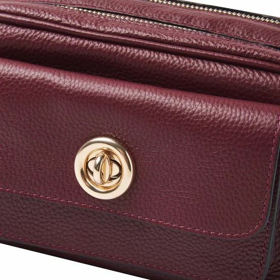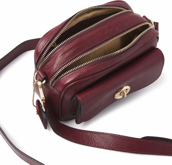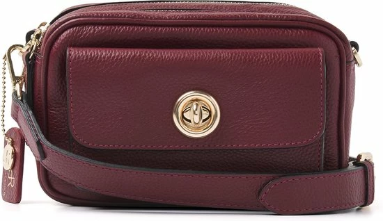 Een handige schoudertas welke over veel opbergruimte beschikt. De tas heeft twee grote opbergvakken afsluitbaar met een rits. Aan de voorzijde zit een vak met een slotje en de achterzijde heeft nog een steekvak. De binnenzijde is voorzien van een ritsvakje, telefoonvak en sleutelhanger. De tas is gemaakt van rundleder een heeft een in lengte verstelbare en afneembare schouderriem.