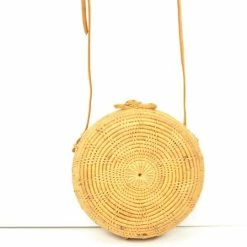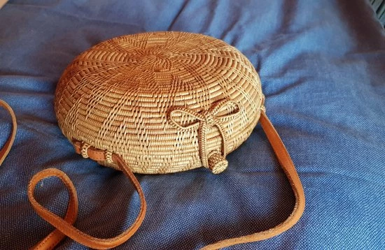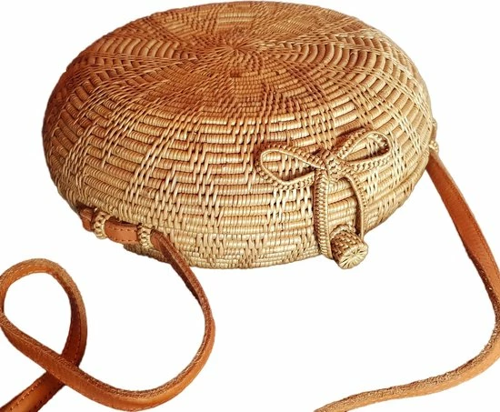 Deze stevige ronde rieten Bali tas wordt handgeweven uit het fijnste natuurlijke materiaal.