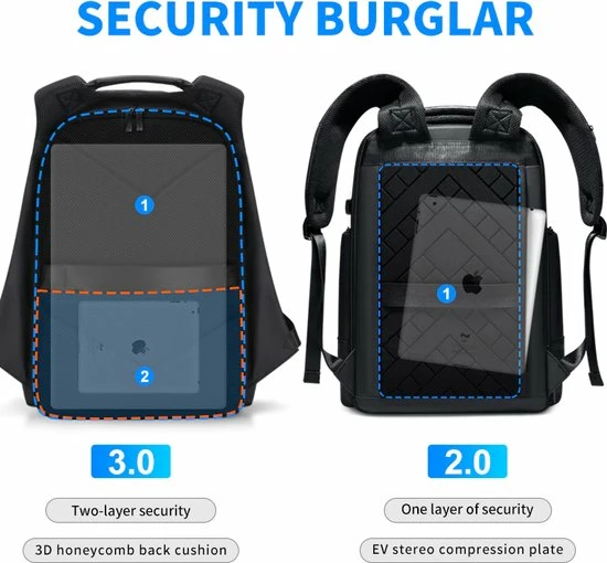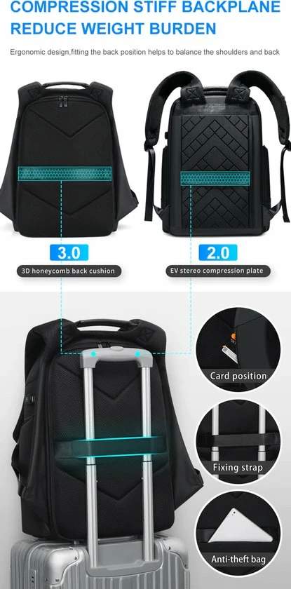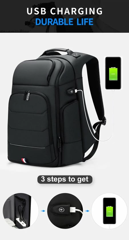 Extra handigheidje: De tas is voorzien van een USB oplaadpoort! Zo voorkom je dat je voor verrassingen komt te staan tijdens je reis.