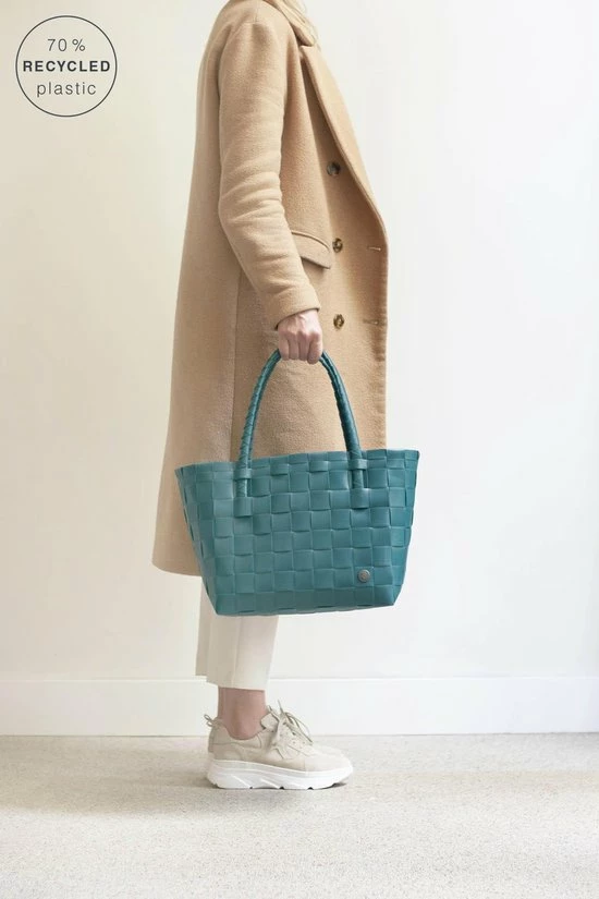 De ‘Paris’ shopper van Handed By is een praktische boodschappentas met een handig formaat. Met deze hand gevlochten shopper heb je geen plastic tas meer nodig. Deze shopper is sterk en biedt genoeg ruimte voor de dagelijkse boodschappen of voor een dagje aan het strand. In veel kleuren beschikbaar en daardoor altijd wel een kleur die bij jouw look past! Gemakkelijk schoon te maken met water. Deze tas wordt met de hand gevlochten en is gemaakt van 70% gerecycled plastic.