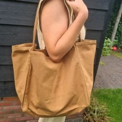 Canvas totebag. Een ruime tas zonder sluiting. Er zit een binnenzak in, zonder sluiting.