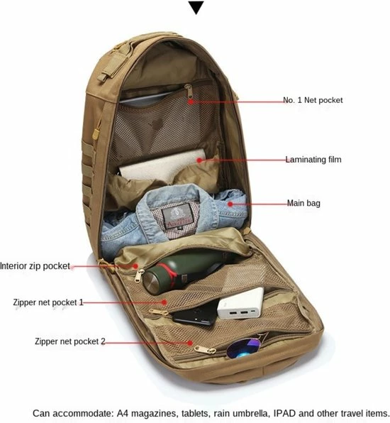 De vele opbergvakken maakt dat je het kunt gebruiken voor camping, trekking, Hiking, Sporten, wandelen maar ook als dagrugzak.