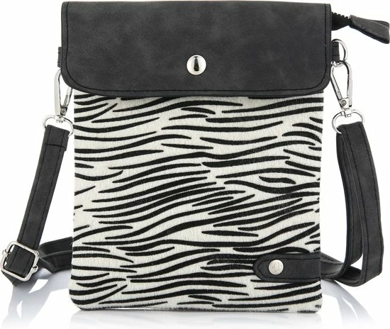 Tijger grijs is een super handig telefoon- en schoudertasje. Het nep bontje maakt het tasje helemaal af.