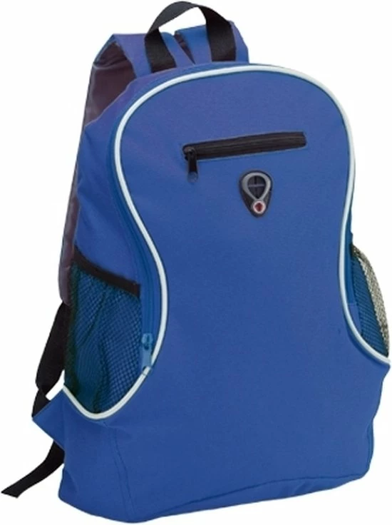 Voordelige backpack rugzak blauw. Een voordelige rugzak in de kleur blauw met 2 flessenhouders en 1 groot vak en 1 klein voorvakje. Met dikke schouderbanden. Formaat: ongeveer 30 x 40 x 18 cm. Inhoud: 21,5 liter. School accessoire/benodigdheden.