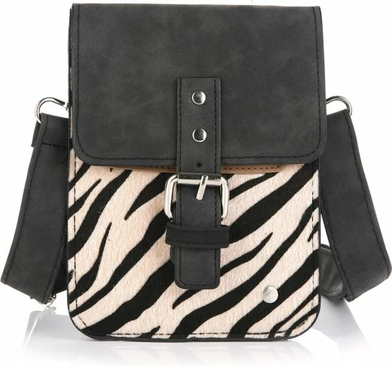 Deze zebra Black tas is een super handig telefoon- en schoudertasje. Het nep bontje maakt het tasje helemaal af.
