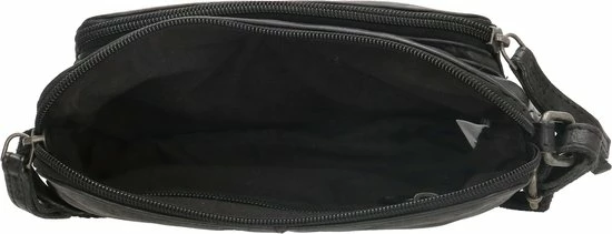 Mooie kleine leren schoudertas/crossbody uit de Paint Rock serie van Old West. Het hoofdvak is met een rits afsluitbaar en heeft binnenin een ritsvakje. Op de voorzijde zit een ritsvak waar je bijv. je mobiele telefoon in kwijt kunt. De tas is subtiel afgewerkt met het Old West logo. De tas kan over de schouder maar ook als crossbodytas schuin over het lichaam gedragen worden.