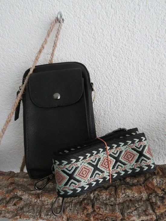 Kleur: zwartMateriaal: PU materiaal / Veganistisch leerAfmeting: 12cm x 20cmAfmeting koord: Verstelbaar tot 140cm