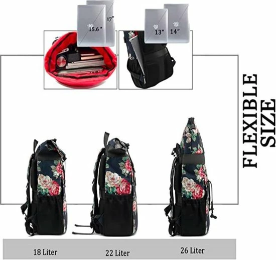 - γUniek design & grote capaciteitγRugzak dames afmetingen (l x b x h): 30 x 15 x 42 cm opgerold, 30 x 15 x 60 cm uitgerold, het variabele volume: 18 tot 26 liter, de dagrugzak als compacte handtasvervanging ter ontlasting van de schouders is ook geschikt als robuuste dagrugzak, de zelf volledig verpakt niet te groot lijkt.