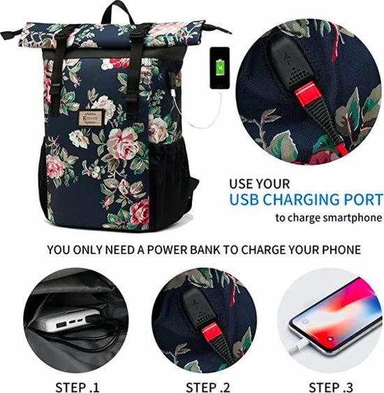 - γUSB-opladerγRugzak voor dames met een USB-aansluiting voor het opladen van je apparaten terwijl je onderweg bent. Ingebouwde oplaadkabel. (Houd er rekening mee dat het apparaat niet automatisch van stroom kan worden voorzien. De USB-oplaadpoort dient alleen voor eenvoudig opladen.)