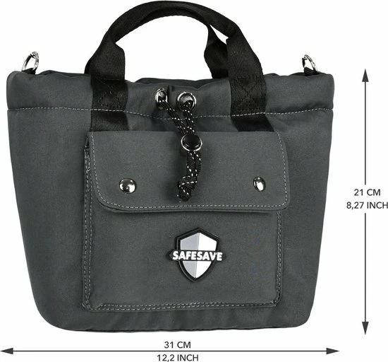 Superhandige schoudertas van het merk SafeSave. De tas heeft een verstelbare schouderband en aparte hengsels. Deze schoudertas is sterk, functioneel en ruim. De tas is gemaakt van waterafstotende micro parachutestof en hierdoor is de tas waterdicht. Ook kan de tas tegen een stootje, dus perfect voor veelvuldig gebruik.