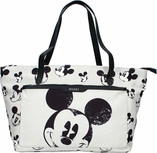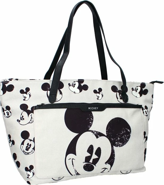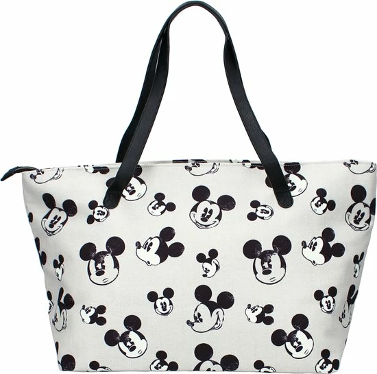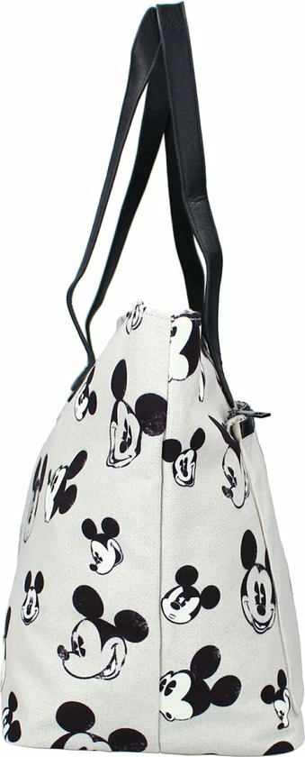 Of je nu gaat winkelen, wandelen, een dagje naar het strand of boodschappen doen, deze lichtgrijze shopper van Mickey Mouse van Disney neem je altijd gemakkelijk met je mee! In het ruime hoofdvak is genoeg plek voor je portemonnee, sleutels, telefoon, make-up en andere benodigdheden. Sluit het hoofdvak af met de rits zodat je spullen altijd veilig opgeborgen zijn. De tas heeft twee draagmogelijkheden, namelijk twee hengsels en een afneembare, in lengte verstelbare schouderriem.