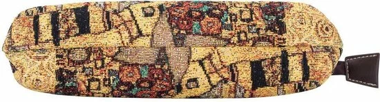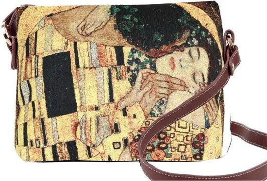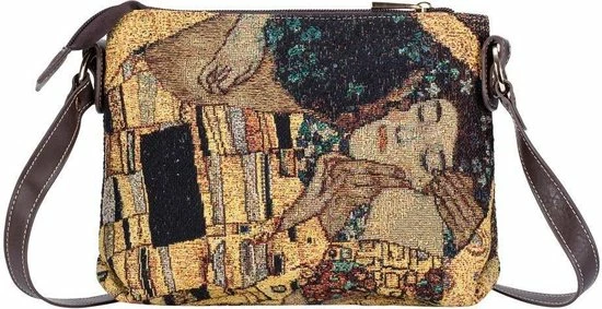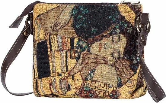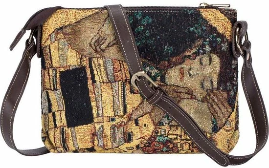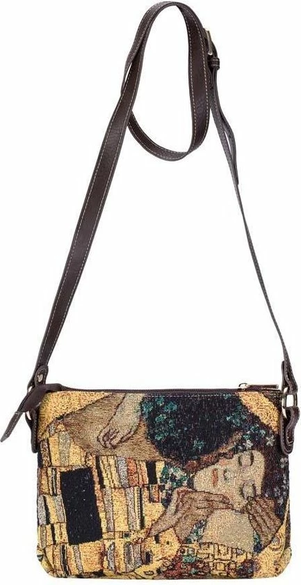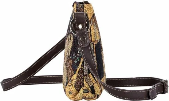 Een handige crossbodytas van gobelinstof, perfect voor dagelijks gebruik. Met gouddraad.