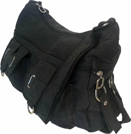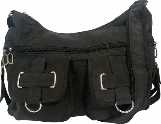 THL Design β Dames Schoudertas β SuΓ¨dine / Stoffen tas β Lichtgewicht β Veel Vakken β Zwart