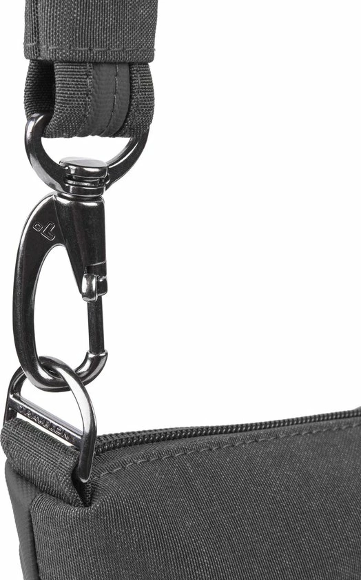 Dankzij de vele verschillende veiligheidskenmerken zoals we die kennen van anti-diefstal rugzakken heeft Travelon hier nog een schepje bovenop gedaan en kan deze tas met recht een anti-diefstal tas worden genoemd. In de stof van deze schoudertas zitten metalen draden verwerkt waardoor de tas niet opengesneden kan worden met een mes. In de schouderband zit een staalkabel verwerkt waardoor ook deze niet doorgesneden kan worden. De belangrijkste ritsen zoals die van het hoofdvak zijn voorzien van een speciale vergrendeling en de musketon van de schouderriem is voorzien van een extra vergrendeling waarmee je deze tas kan vast zetten en hiermee een ‘cut & run’ kan voorkomen. Ook is de tas beschermt met RFID zodat de pasjes die zich in de tas bevinden niet van buitenaf geskimd kunnen worden. Dit alles is op een dusdanige subtiele manier verwerkt dat dit van buitenaf niet zichtbaar is.