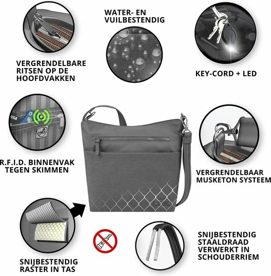 Kenmerken van deze anti-diefstal tas.