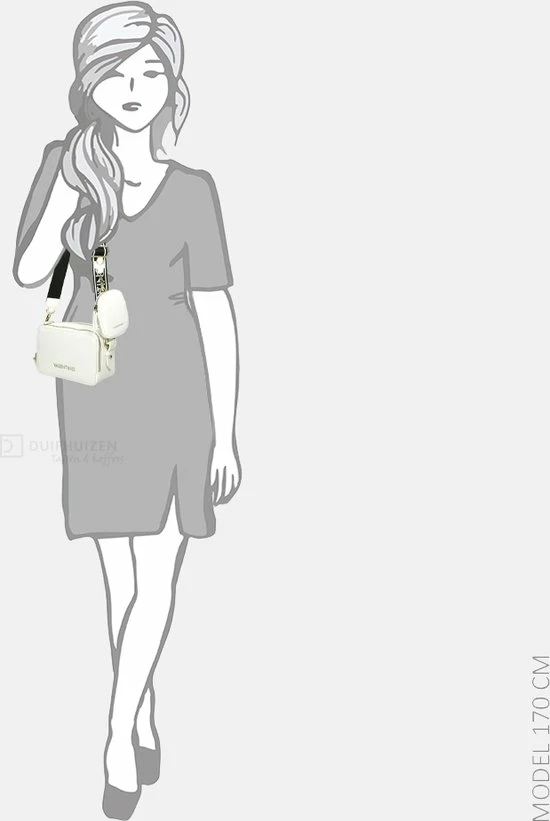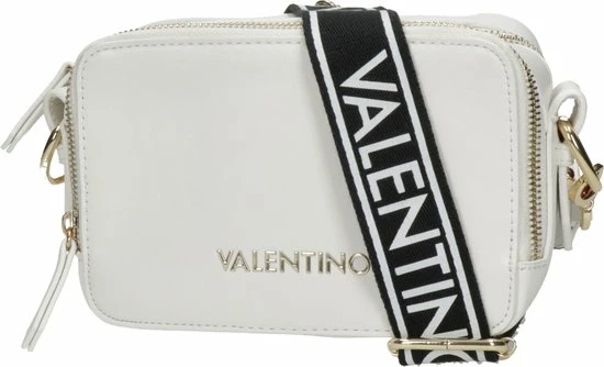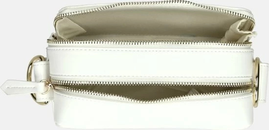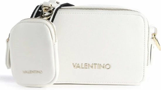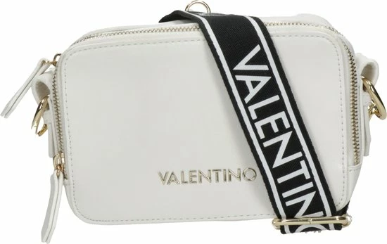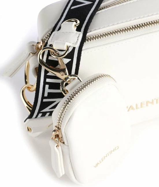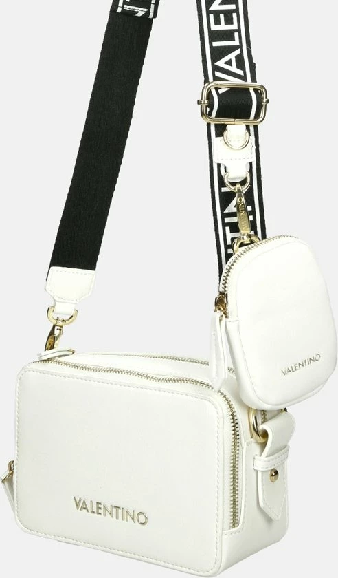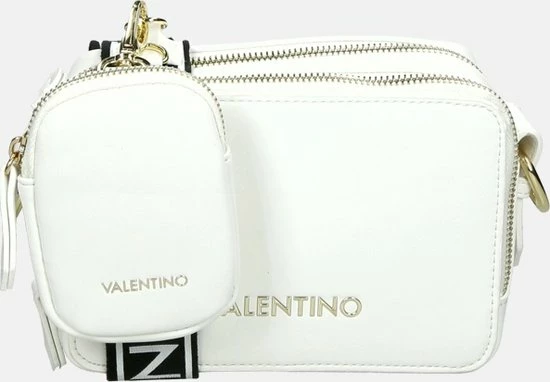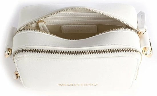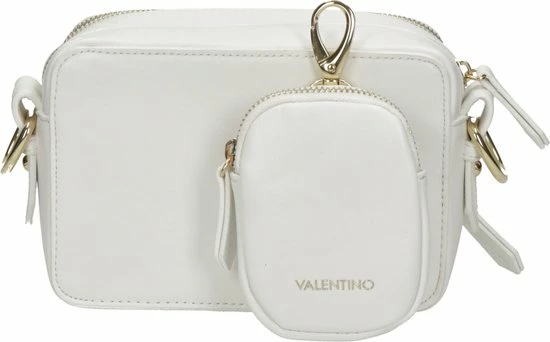Valentino Avern Bianco schoudertas. De perfecte tas voor een avondje uit! De tas is uitgevoerd in imitatieleer met chiqué gouden details die je outfit compleet maakt. De binnenkant is gevoerd met textiel. De tas heeft twee vakken met een ritssluiting en is voorzien van een schouderband met daaraan vast een klein tasje. Afmetingen van de tas: 13x18x9cm.